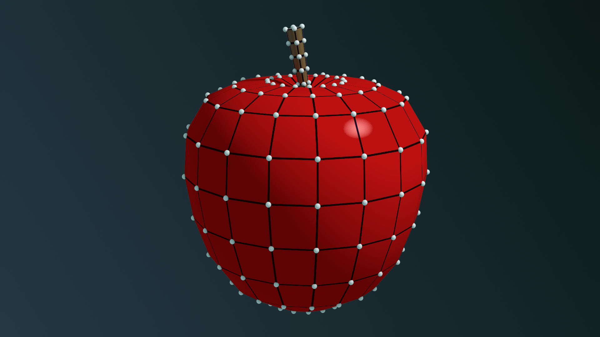 To work with meshes and understand how they are rendered, it will help to know how they are structured. Look closely at one of the apples on your workbench in Wireframe view.