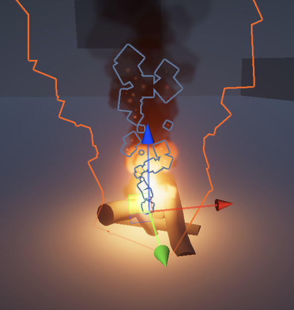1. In the Hierarchy, expand FirePit, then select Fire_ParticleSystem_Prefab. The fire Particle System should begin playing in Scene view.