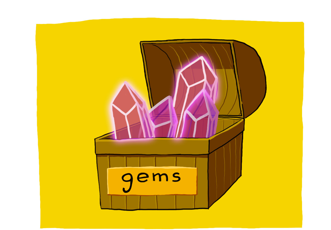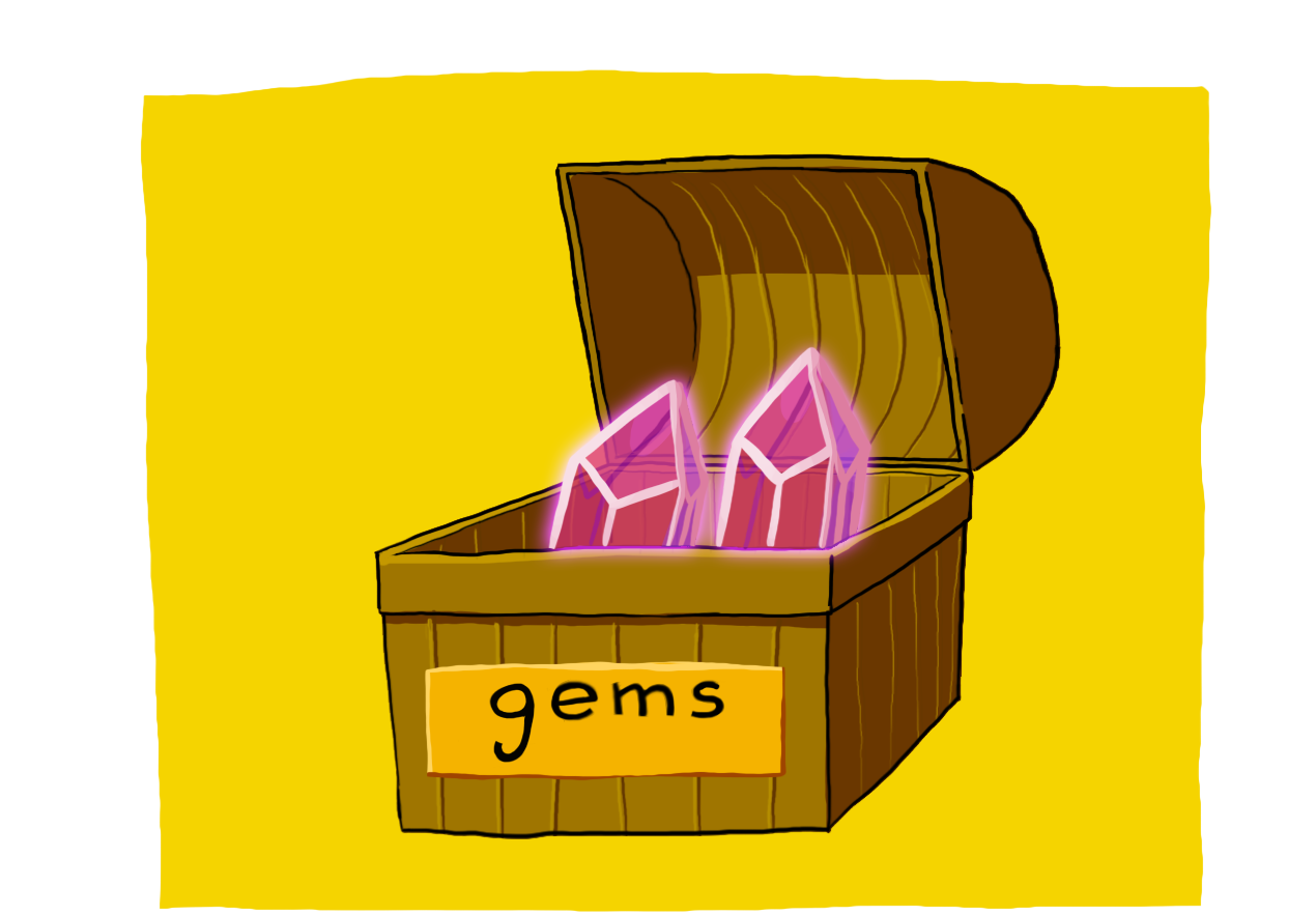 In the image below, a variable (trunk) called gems has been assigned the value 2.