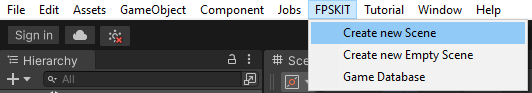 1. From the top menu bar, go to FPSKIT > Create new Scene.