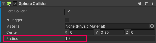7. In the Center field, set Y to 0.95. This will ensure that the collider sits at the center of the germ, rather than below it.