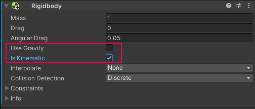 - Enable the Is Kinematic checkbox