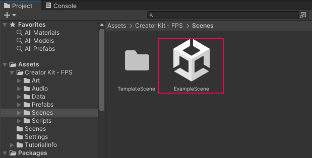 1. In the Project window, navigate to the Assets/Creator Kit - FPS/Scenes folder.