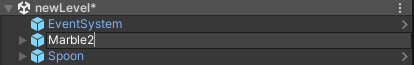 The new marble will appear in the Hierarchy window as Marble(1). You can right click on it to change the name to something more distinctive.
