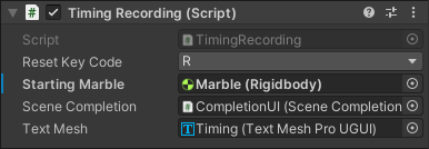 TIP: You can also use the Timing Recording component to change the key used to restart the game, by selecting a new key in the Reset Key Code field.