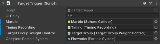 3. Go to the Target list at the bottom of the component and click the + button. Then click the circular button to the right of the new item on the list and select the name of your new marble from the drop-down menu.