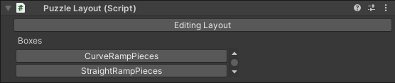 4. In the Inspector window, go to the PuzzleLayout component. You will be able to use this to build you ramp, just as you did for your first layout.