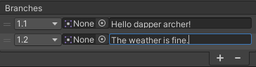 You won’t be able to see the two branching dialogue items in Play Mode until you’ve added the player choices which trigger these responses — let’s add these choices next.