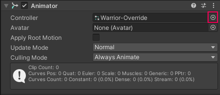 3. For this NPC, select the Archer-Override Animator Controller. This will give them the movement designed specifically for this character type.