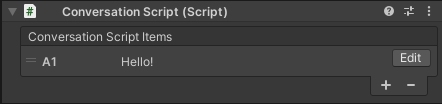 3. Select the default Conversation Script Item (A1) and click the - button to clear it.