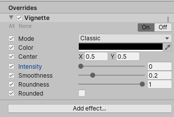 Screen-based image effects add specialized filters to the application camera which can be used to drastically increase the visual quality of a project. Unity’s Post-Processing Stack replaces previous iterations of screen-based image effects and combines them all together in an easily configurable way. Designers can easily adjust the appearance of several effects without needing to worry about technical aspects such as render order, which allows them to focus purely on the visual aesthetic of the effect. A Global Post-Processing Volume allows a designer to use the Post-Processing Stack to create an overall look and feel for their Project.