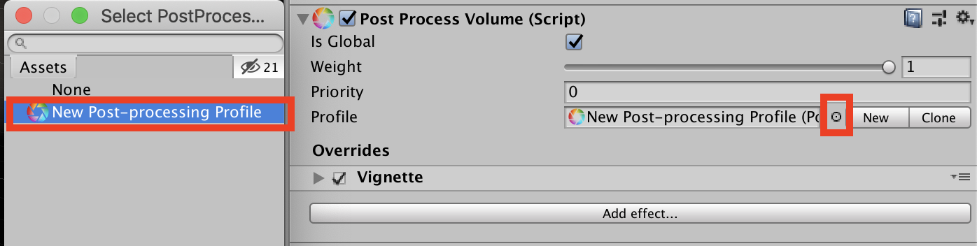 12. Now with that added, you can simply select the Profile you created in the Project and toggle the Post-Processing effects you wish to use.