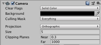 The size of an orthographic camera specifies how many Unity units fit vertically between the camera and either the top or bottom edge of the screen. In 2D projects, this is directly related to the Pixels Per Unit setting for Sprites. For example, let’s say we have a 2D project where the Sprites are 16 pixels per unit tall, and we want to fit 12 Sprites vertically on screen. The camera’s orthographic size would be set to 6. Orthographic cameras are most often used in 2D projects, but may also be used in 3D when perspective distortion is undesirable.