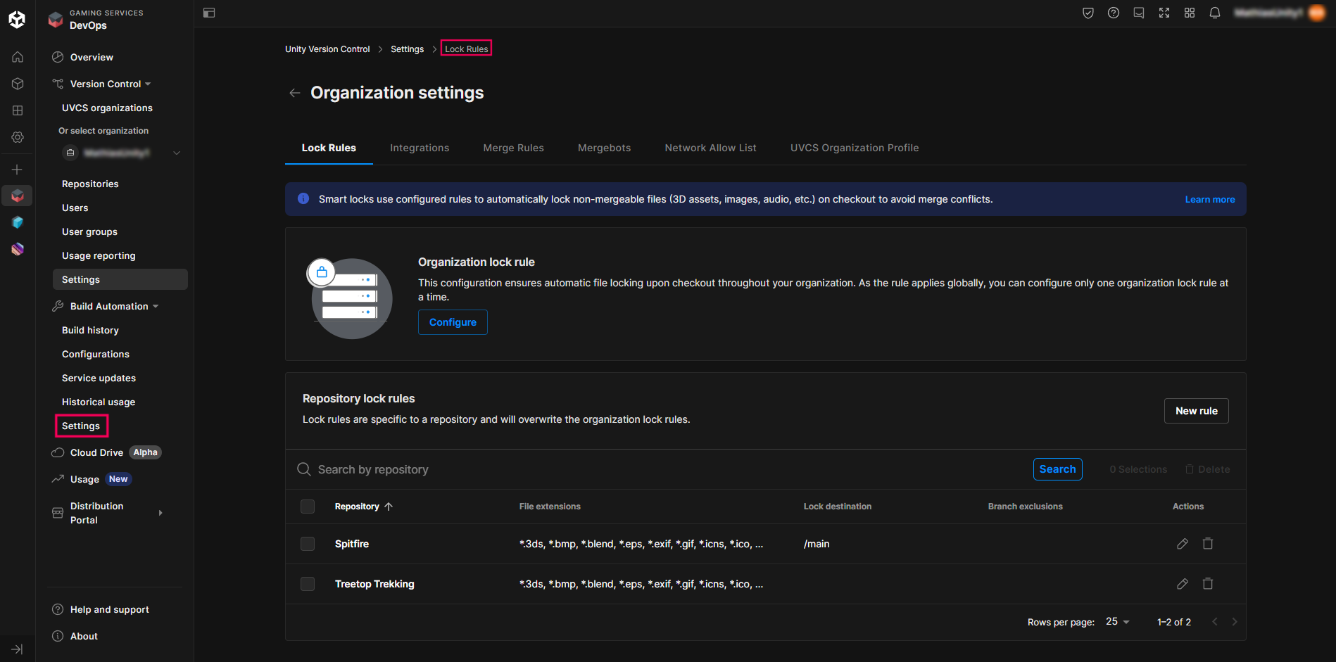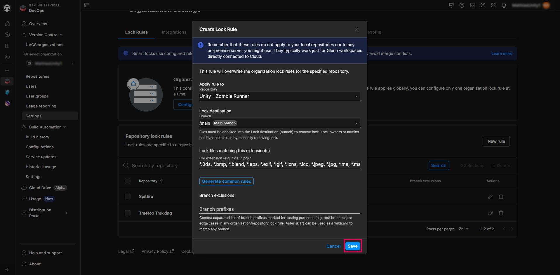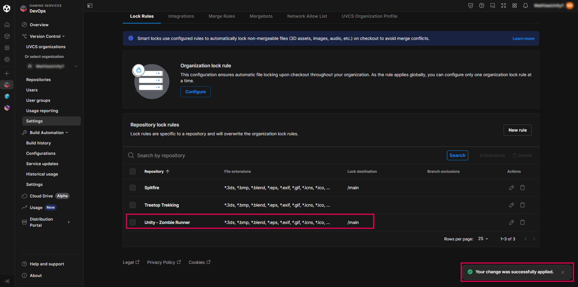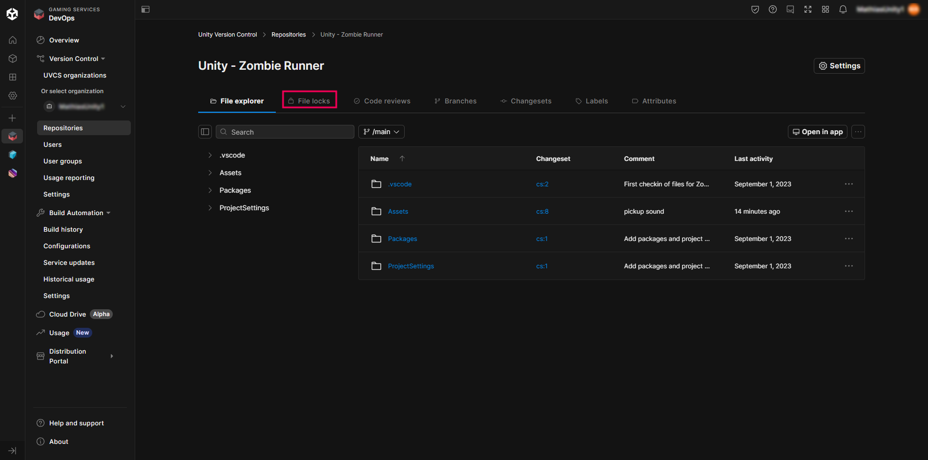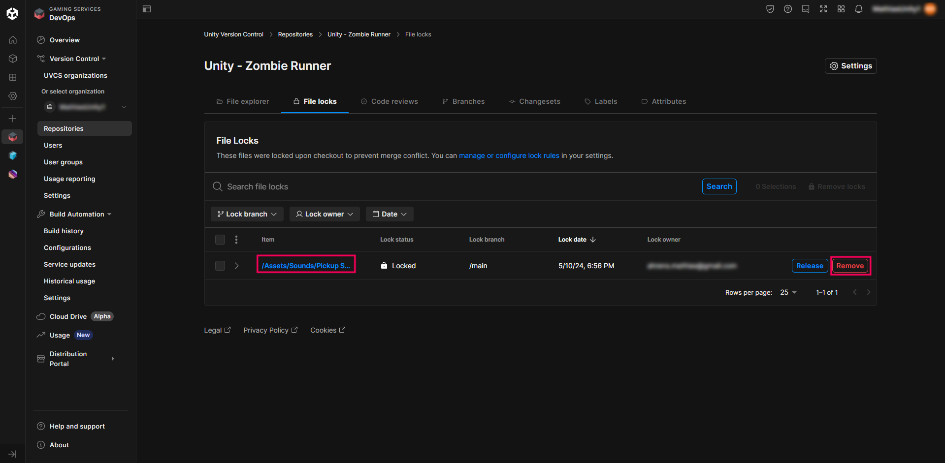 8. Go to the Unity Cloud Dashboard and check if the locked file appears in the list.