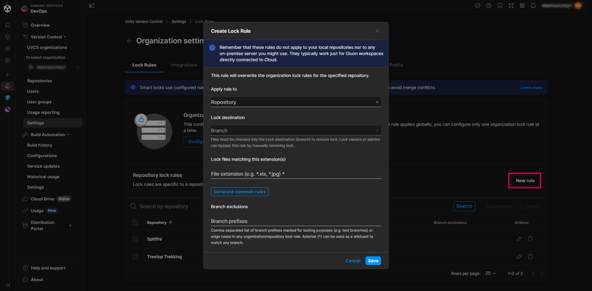 Here, you can see your list of repository lock rules. You have the choice to create rules that apply to all the projects, or only specific ones.