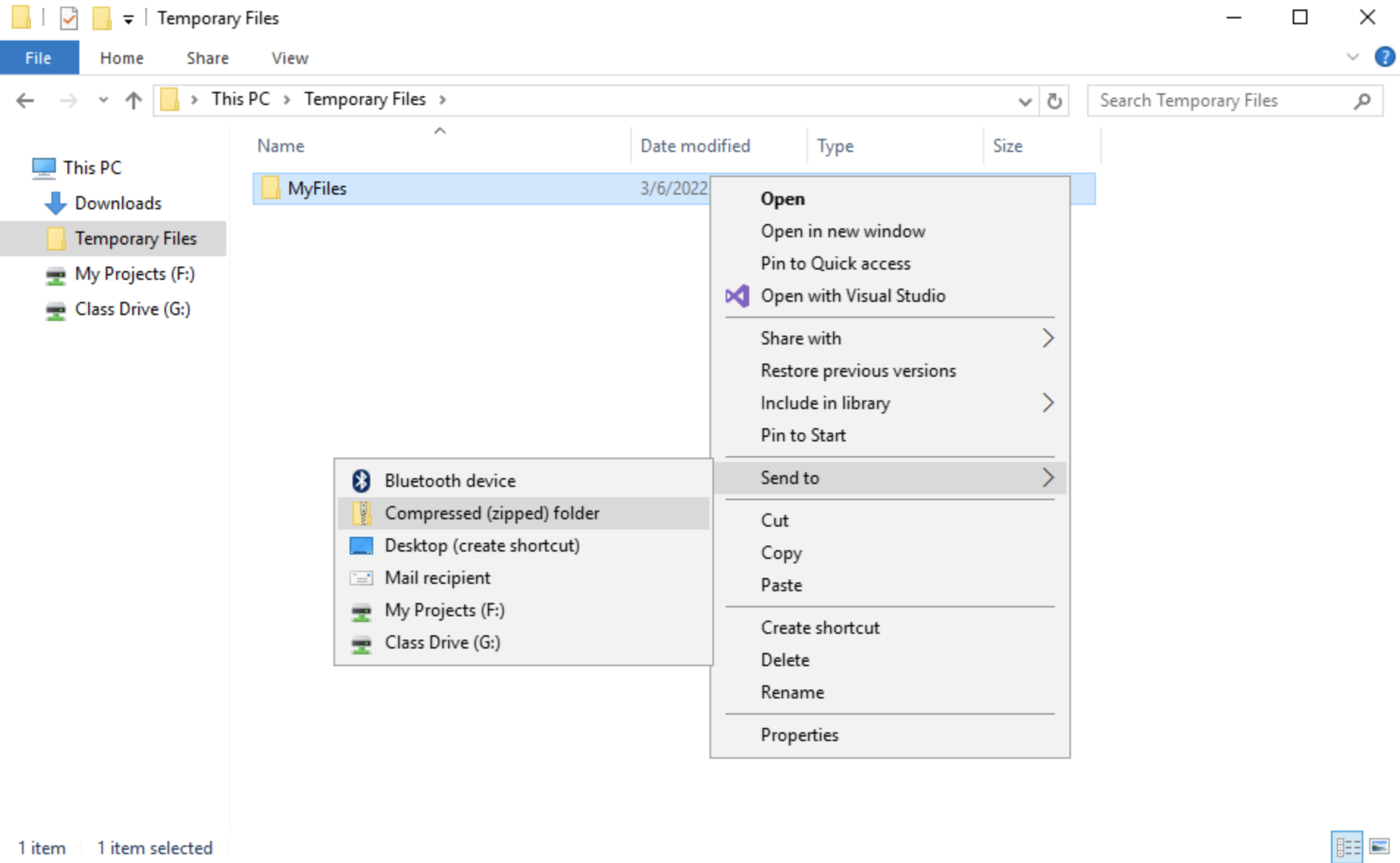 Use the File Explorer to navigate to the folder or files you want to export. If you have multiple files, put them together in one folder.