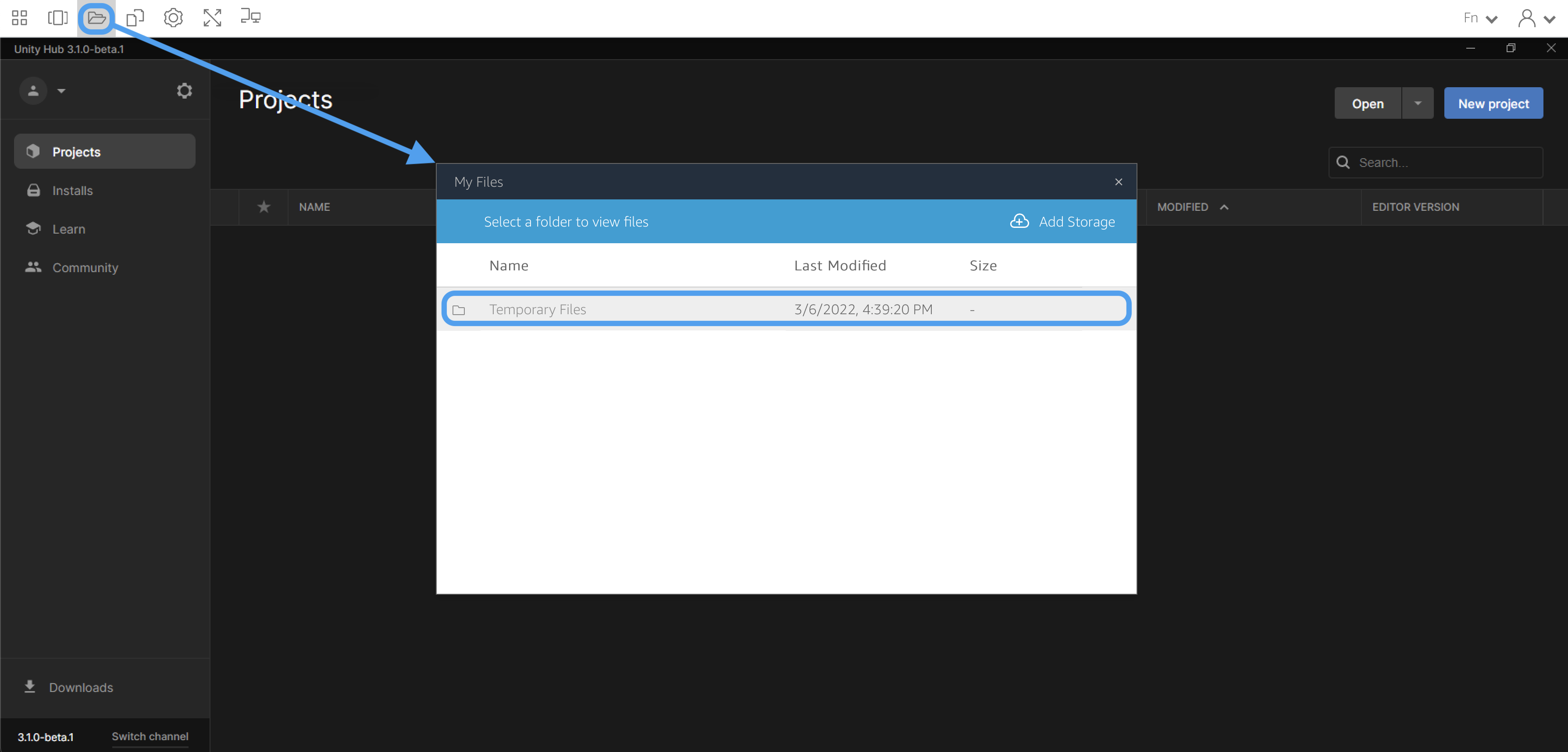 Click the folder icon from the menu, then double-click the ‘Temporary Files’ folder.