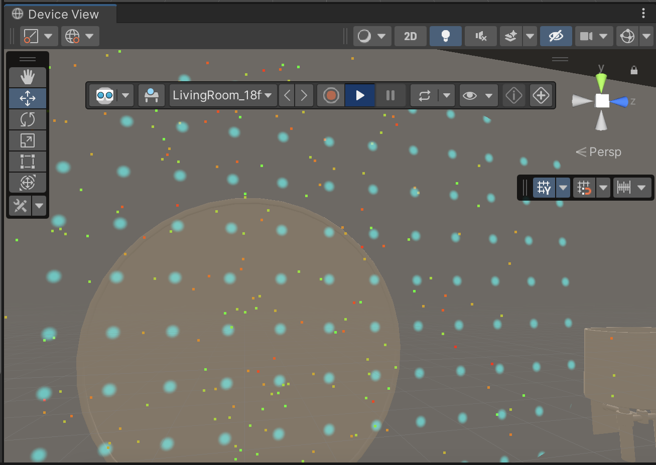 The Device view simulates the view from a physical mobile device running your AR app. You can use this window to navigate as if moving around with a device in the simulated environment. This device simulation means you can do things like detect planes or point clouds.
