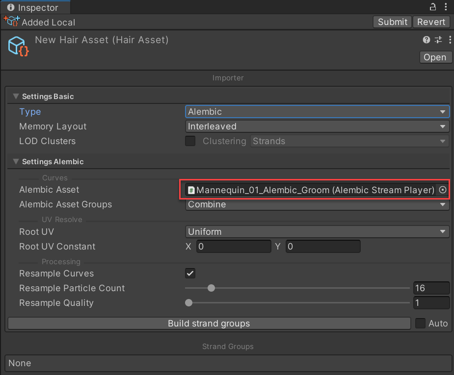 3. Select Build strand groups to rebuild your asset after you adjust strand settings so you can understand the effect of properties such as Count, Length and Curl.