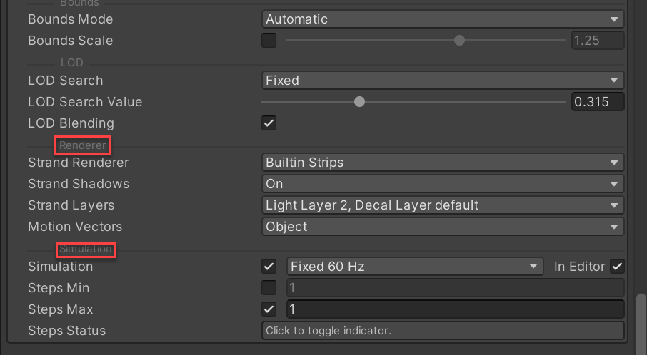 - Steps Min and Steps Max determine the number of simulation steps executed per visual update in the Unity game loop.