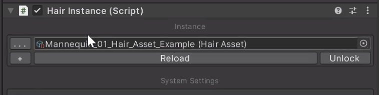 3. Drag the hair asset onto the Instance property of the Hair Instance Inspector.