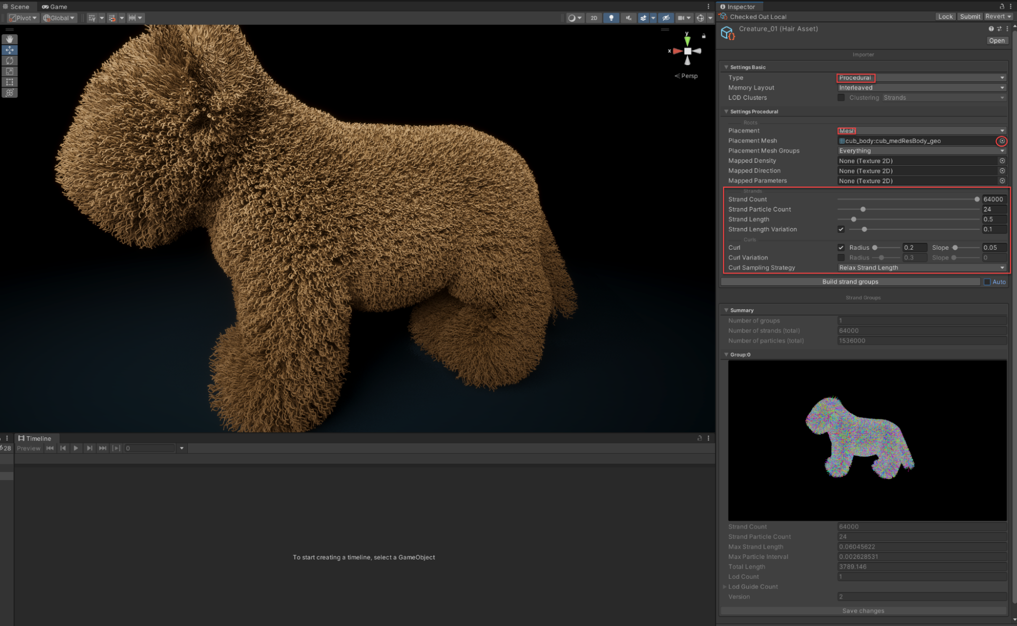 Tip: Enable Auto to the right of the Build strand groups button to have Unity automatically rebuild your asset each time you change a parameter value.