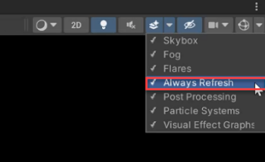 Tip: If you want your hair simulation to continuously update in the Scene view when you are not in Play mode, select the Effects button in the View Options toolbar and select Always Refresh.