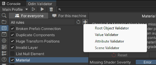 Odin Validator comes with numerous built-in validation rules that address common issues encountered in Unity projects. These rules check for missing references, broken layers, and many other potential and common problems in Unity. You can explore these rules in the Odin Validator window by selecting the Validation Rules tab.