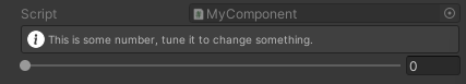 Let’s check out a simple attribute example that you might already be familiar with - the Range attribute. With this attribute, we transform the someNumber to be shown in the inspector as a range slider instead of the default number field.