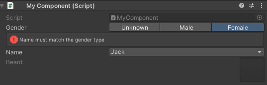 [ValidateInput("@NameDatabase.GetGenderFromName($value) == this.Gender",