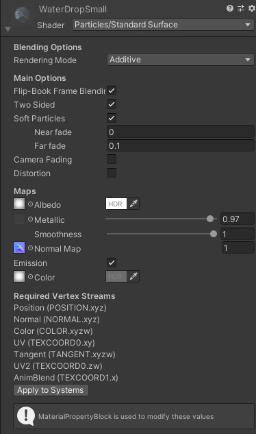 a. In the Material inspector click Apply to Systems to setup the correct custom vertex streams