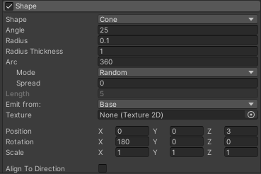 c. Adjust the Position and Rotation so the cone is opening towards the ground