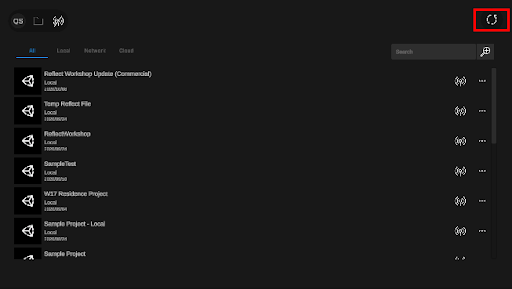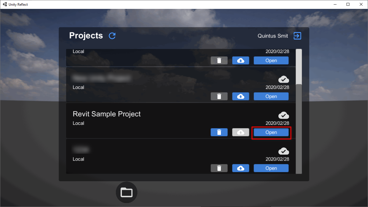 4. The Reflect Viewer will now display all projects shared with the Unity account (Figure 03). Note: If the Reflect Viewer closes without any error warning, you are not logged in with the correct account.