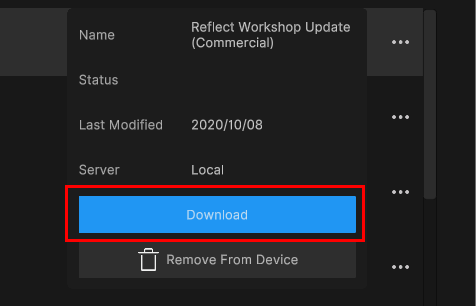 1. Selecting Download will start the process of downloading necessary files from the central Reflect server to the local device (Figure 06). These files will be downloaded automatically if you open a project.
