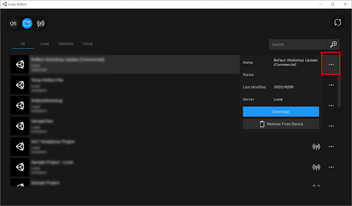 The Reflect Viewer project interface provides options to manage and access your projects. To the right of each project, you will see three dots. If you select this, a window will open that displays the information of the project, as well as the option to download or delete the project from your local workstation.