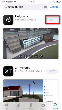 1. Search for “Unity Reflect” in the iTunes app store (Figure 01).