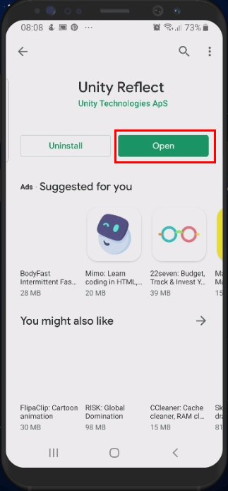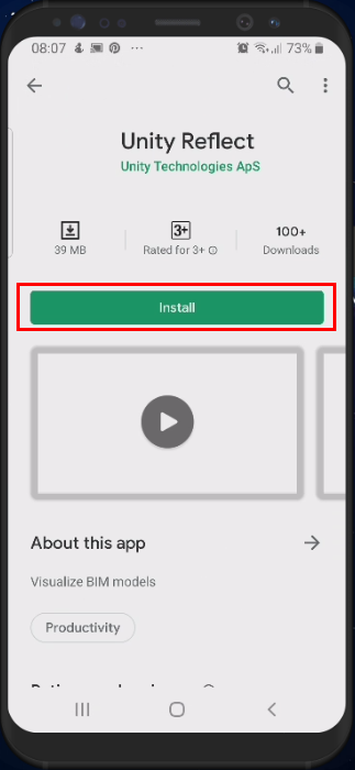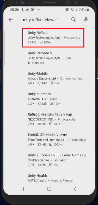 10. Search for “Unity Reflect” in the Google play store (Figure 10).