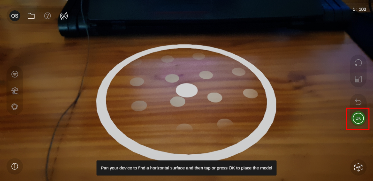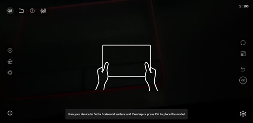 3. Move the mobile device around until it picks up a flat surface. Once the surface has been detected (Figure 21), tap the screen to lock it in and then select the OK button to place the model (Figure 22).