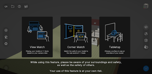 2. You are now presented with 3 AR options: View Match, Corner Match and Tabletop. Select the Tabletop option (Figure 20). Note - You can use the same World icon to switch back to standard mobile interface.