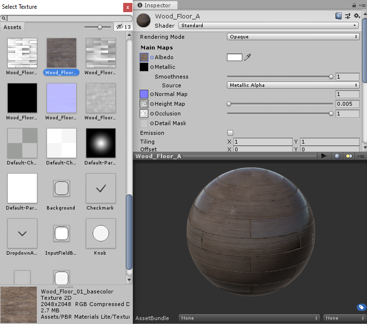 Smoothness: Represents how smooth the Material is. This controls how the light is spread across the surface of the Material.