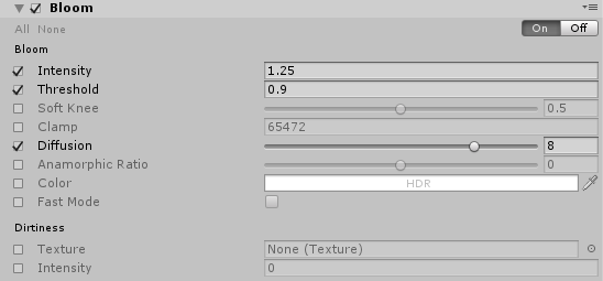 Bloom has quite a few options to configure. The following are under Bloom and Dirtiness: