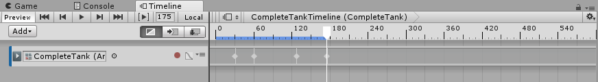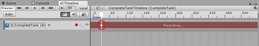 When you are in Record mode, any modification to an animatable property of the GameObject sets a key at the location of the Timeline Playhead, for example if you are recording on a GameObject and you change its position, a key will automatically be set with the changes you made. Animatable properties include transforms and the animatable properties for all components added to the GameObject.