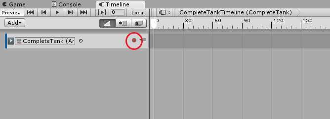 Before you can begin recording a keyframed animation, you must add an animation track to the Timeline Editor window. Once you’ve added a track, you’ll notice a red circle on the right side of the track. (Figure 02)