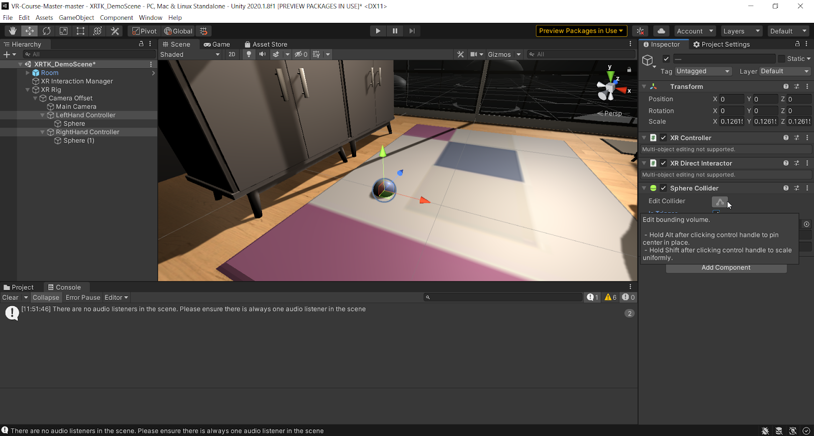 4. Click play and test your grab functionality. You should now be able to grab objects directly
