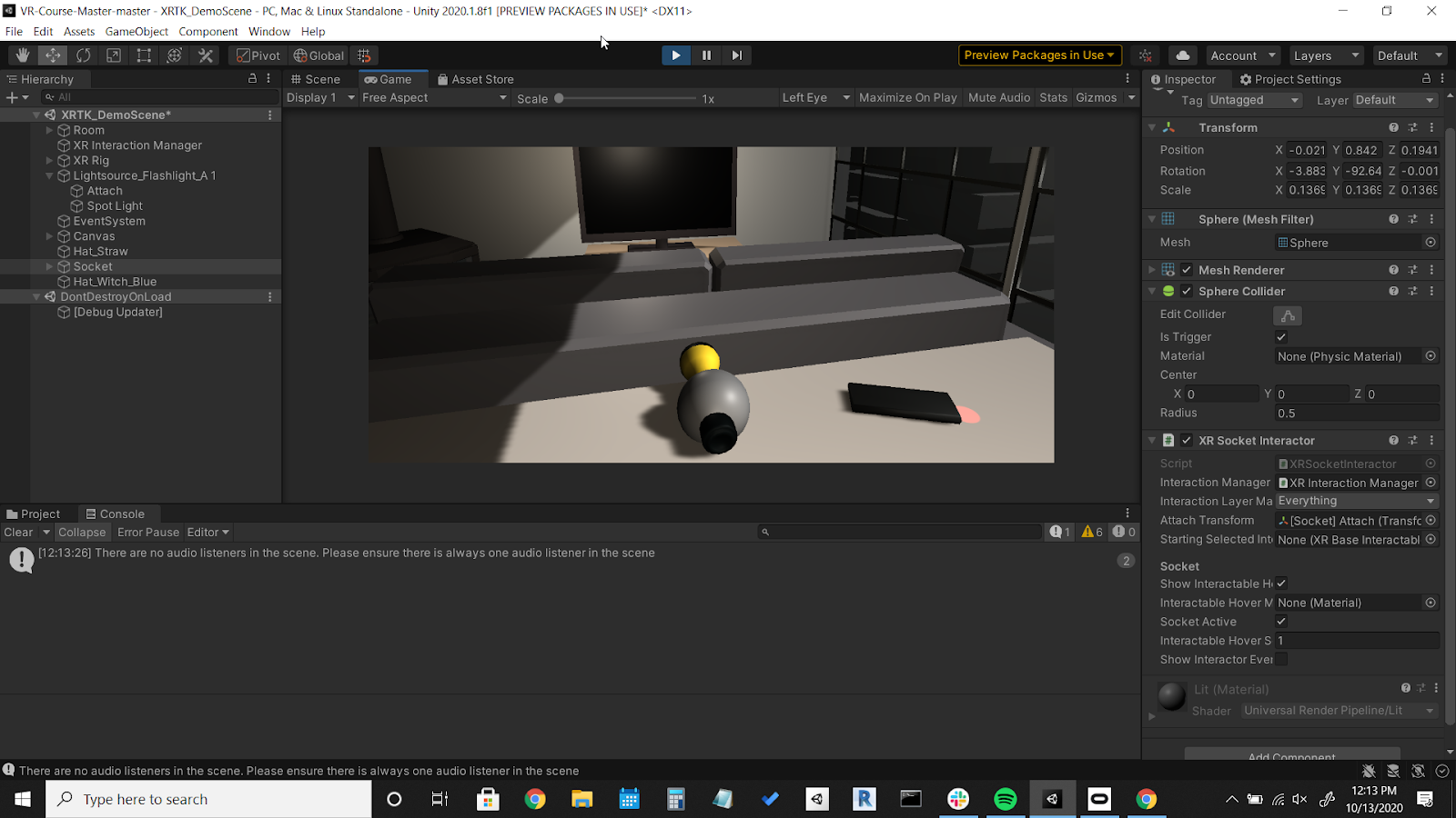 2. To make the socket, add a sphere with a trigger collider. Rename the object to Socket.