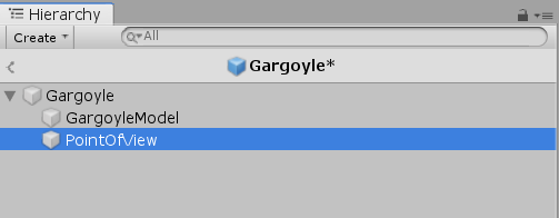 2. This GameObject will act as the Gargoyle’s point of view into the world, so rename it “PointOfView”.