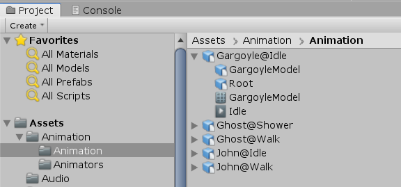 4. In the Project window, navigate to the Assets > Animation > Animations.
