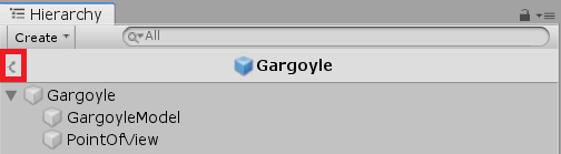 4. Now that you have a Gargoyle Prefab, you can open it for editing. This time you’re going to use a shortcut! In the Hierarchy, click the arrow to the right of the Gargoyle GameObject: