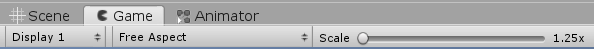 1. Select the Game window tab. You can see if your Game window is scaled at the top.