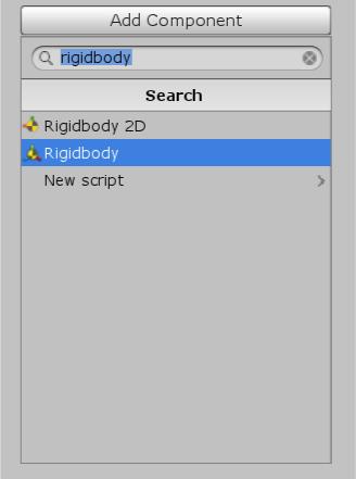 3. In the search bar that appears, type “Rigidbody” and select this from the options that appear.